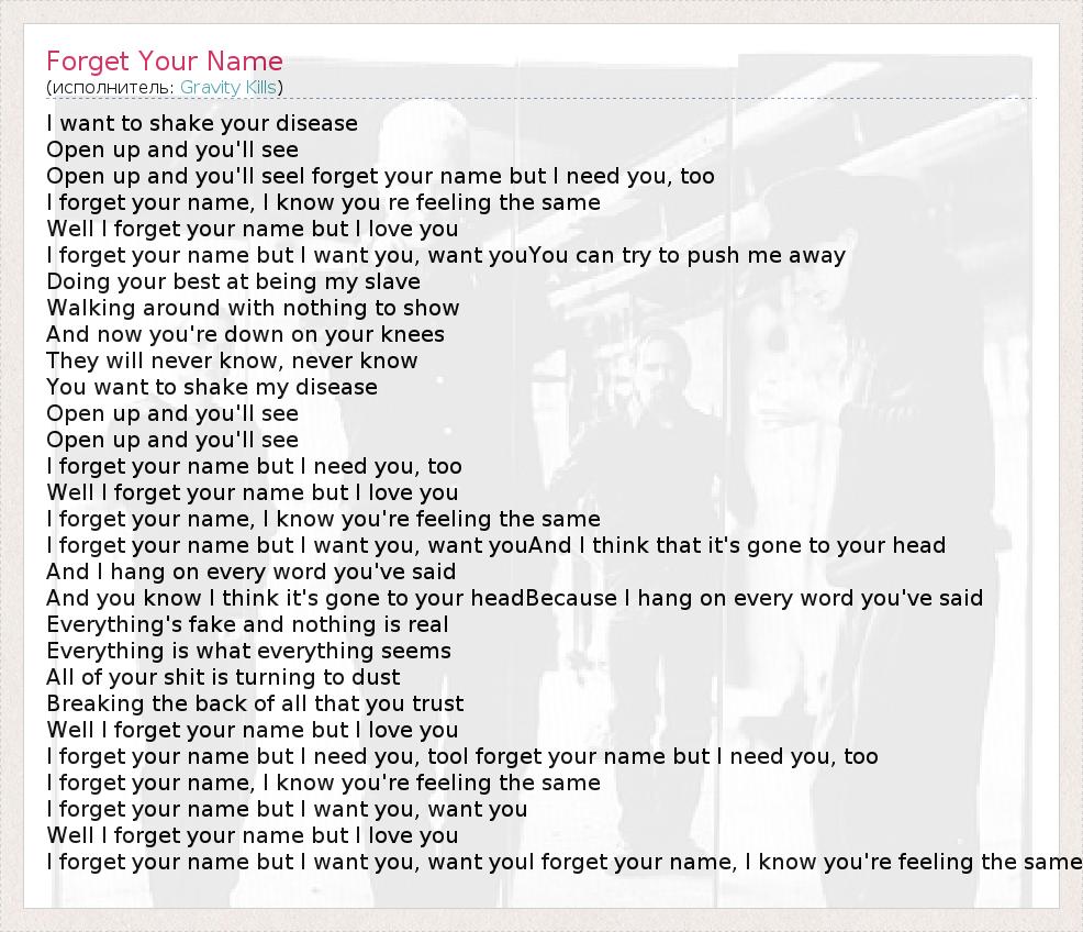 А как ты думаешь, о чем песня "Forget Your Name" ?