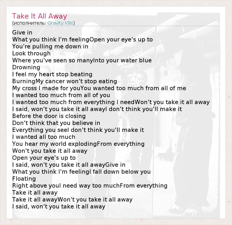 А как ты думаешь, о чем песня "Take It All Away" ?