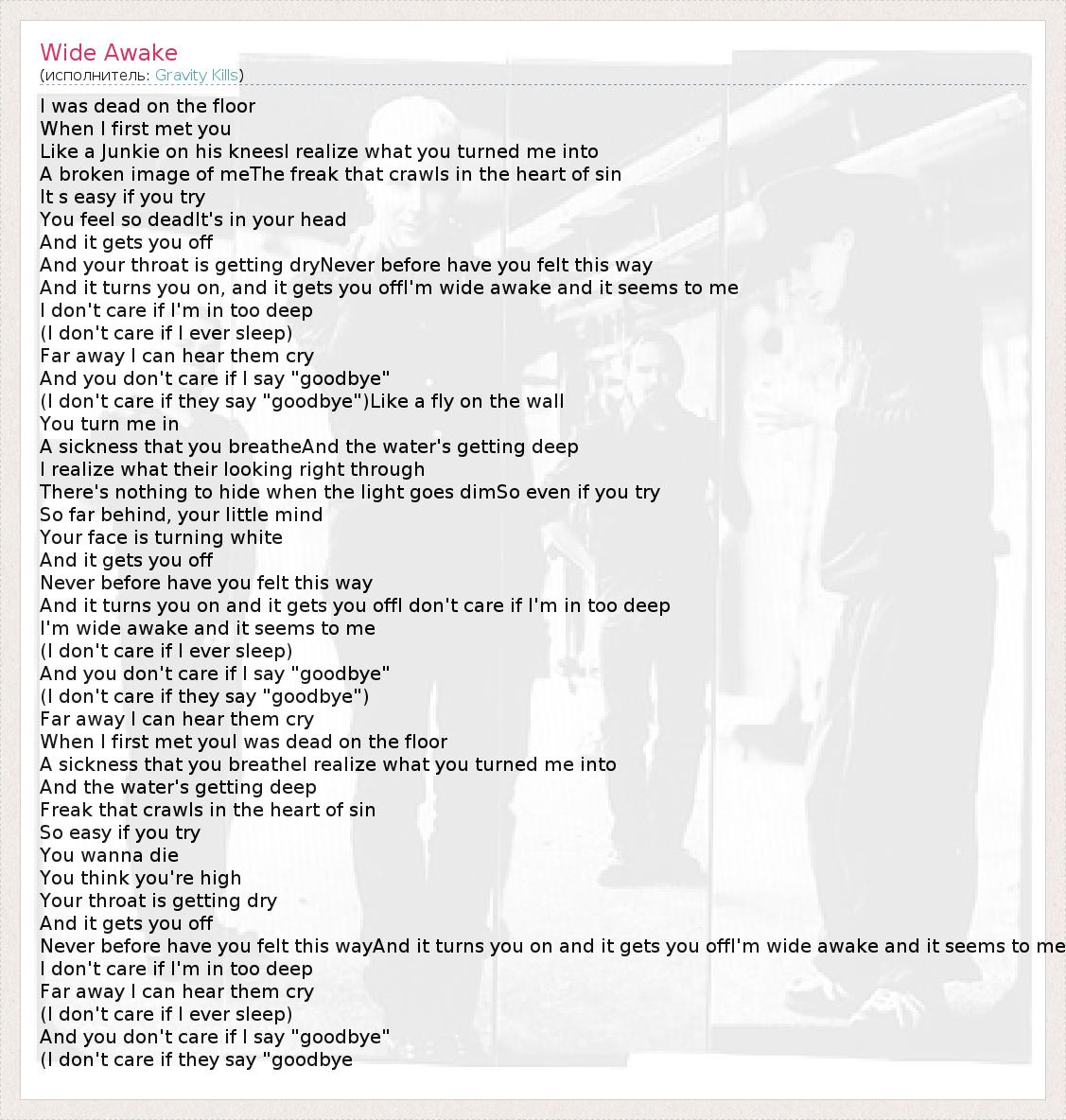 А как ты думаешь, о чем песня "Wide Awake" ?