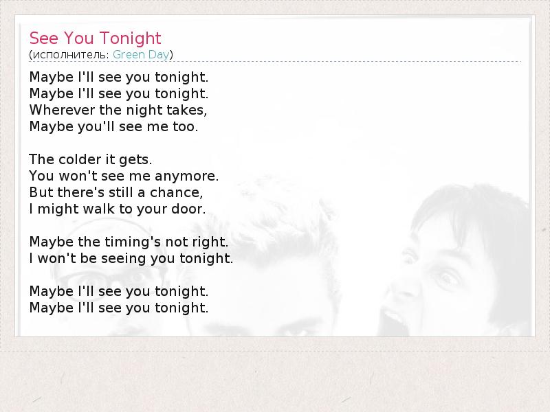 А как ты думаешь, о чем песня "See You Tonight" ?