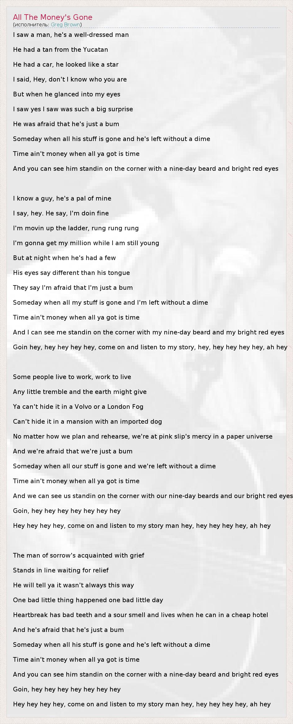 А как ты думаешь, о чем песня "All The Money's Gone" ?