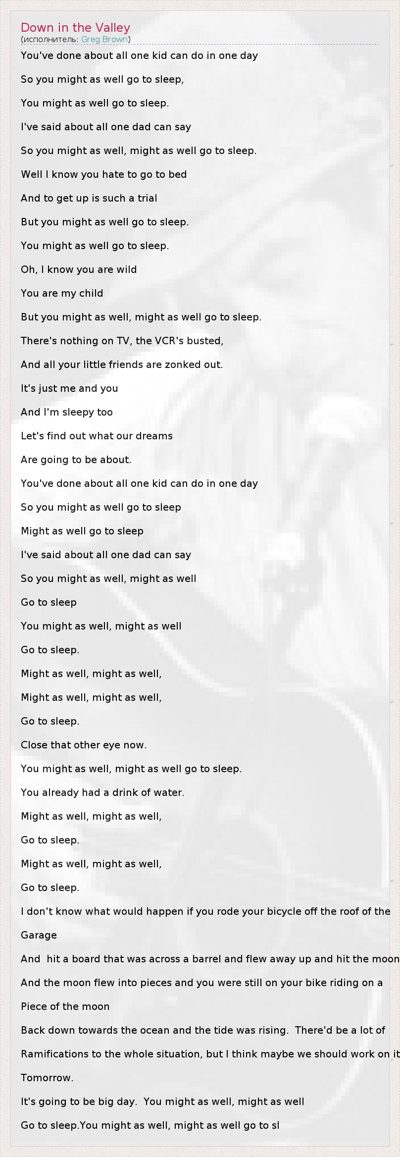 А как ты думаешь, о чем песня "Down in the Valley" ?