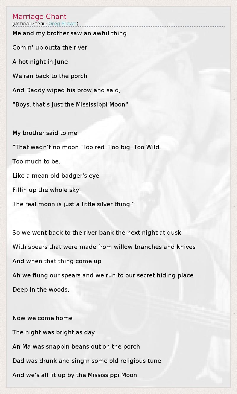 А как ты думаешь, о чем песня "Marriage Chant" ?