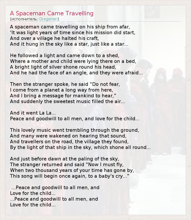 ГлавнаяИсполнителиGregorianA Spaceman Came Travelling