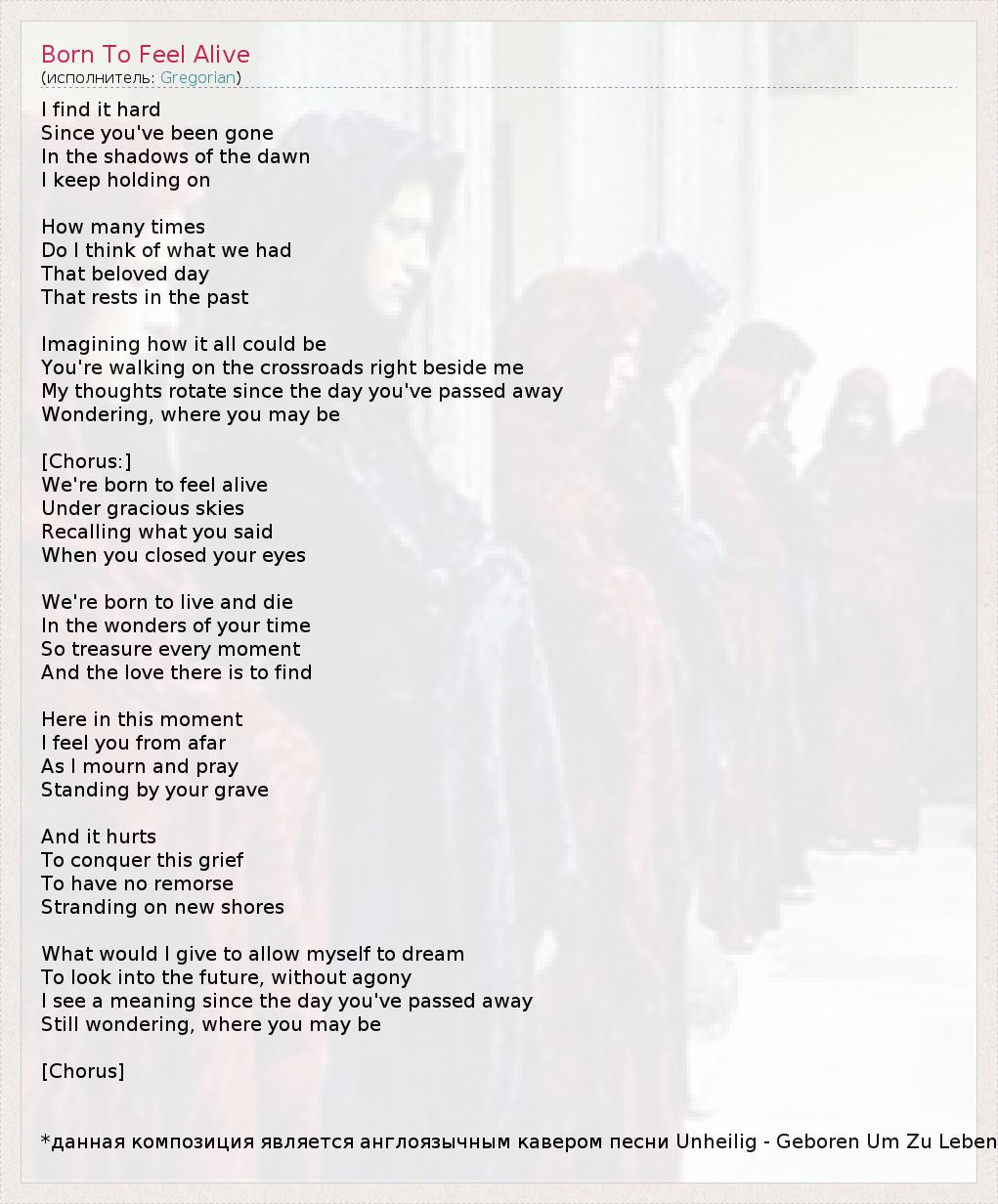 А как ты думаешь, о чем песня "Born To Feel Alive" ?