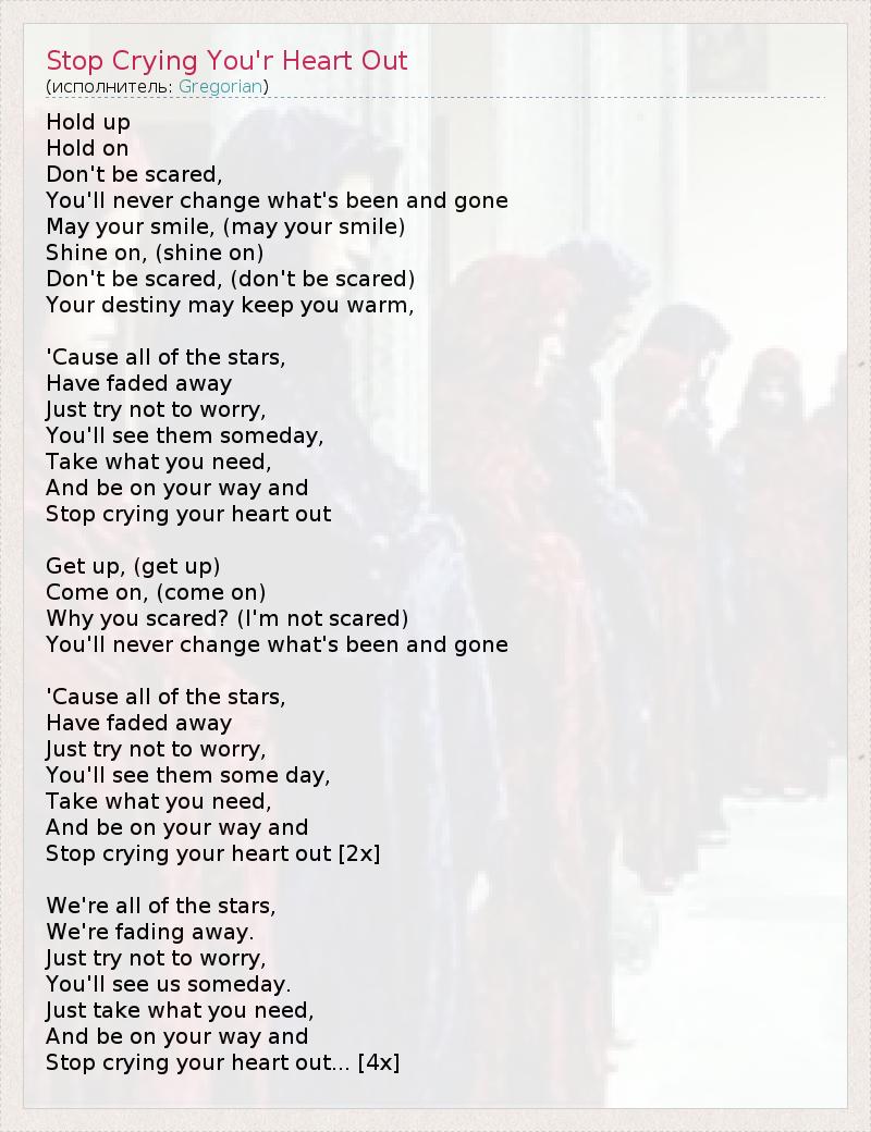 Stop crying your heart out [2x]