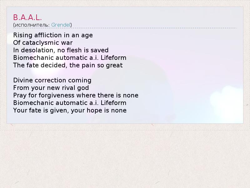 А как ты думаешь, о чем песня "B.A.A.L." ?