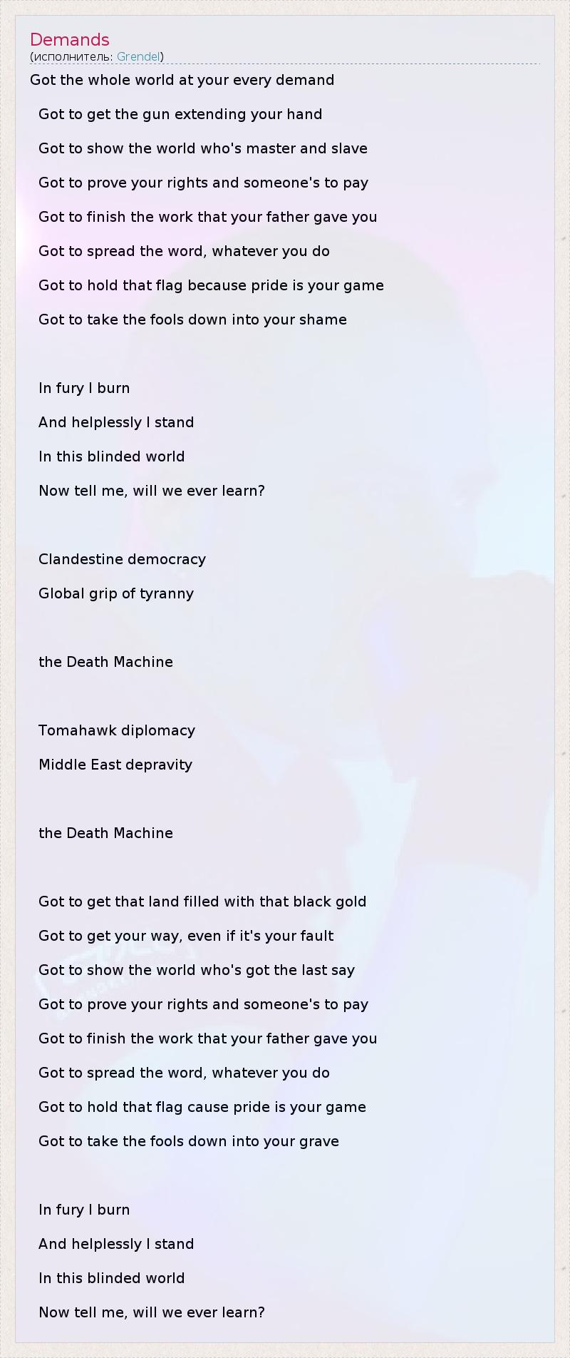 Это интересно:Голландский Dark Electro/EBM проект GRENDEL (потомок Каина, мифический монстр из древних англо-саксонских сказаний о легендарном воине Беовульфе) образовался в 1997-м году и до 2000-го был известен под другими различными названиями.В начале 2000-го года группа записала первый промо-диск, включавший в себя композицию «Strangers», мгновенно ставшую хитом на всех альтернативных танцполах Голландии, Германии,... продолжение