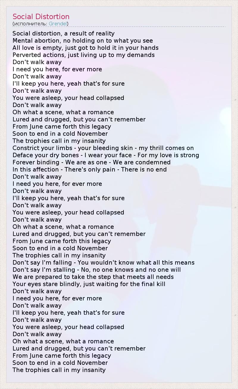 А как ты думаешь, о чем песня "Social Distortion" ?