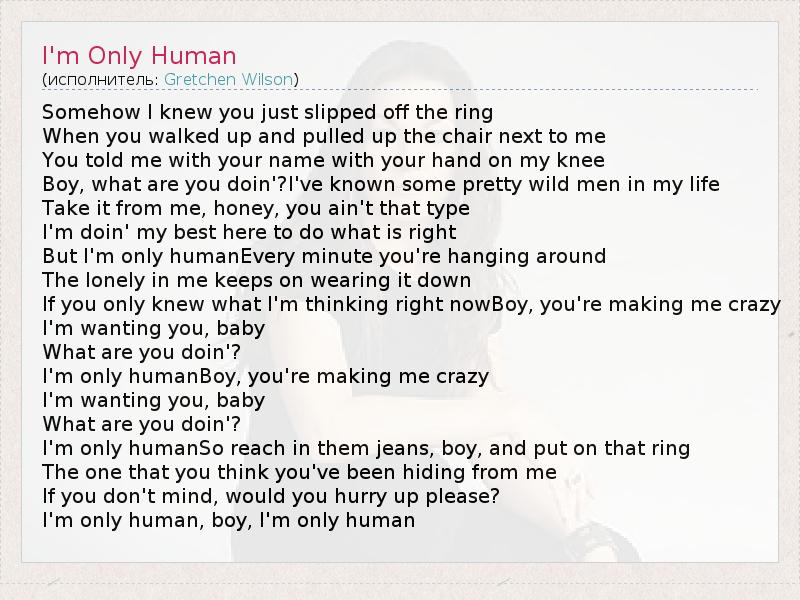 А как ты думаешь, о чем песня "I'm Only Human" ?