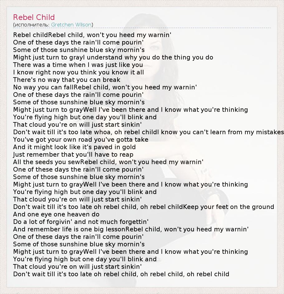 А как ты думаешь, о чем песня "Rebel Child" ?