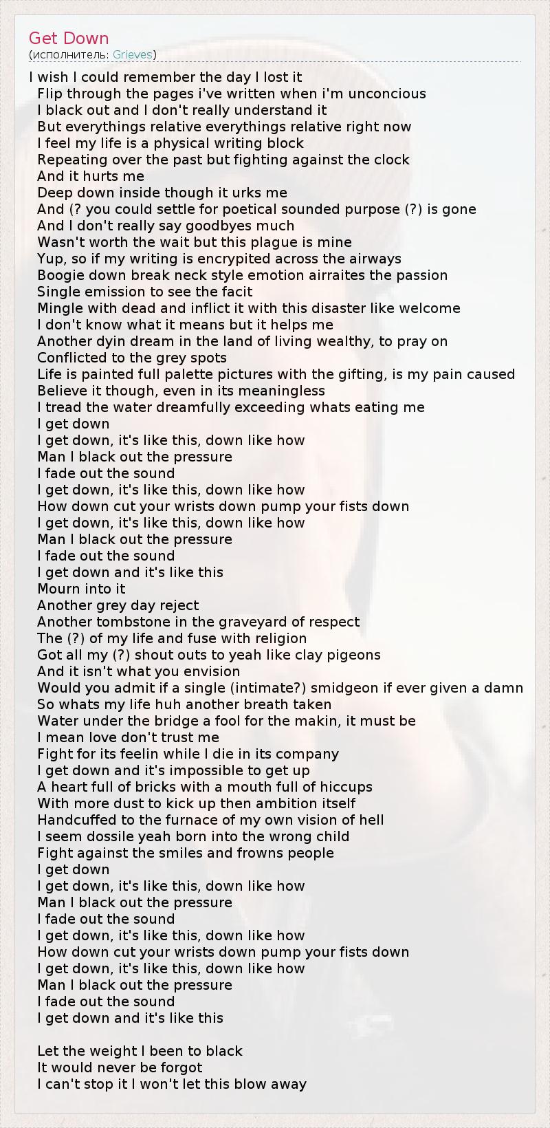 Это интересно:Grieves (он же Бенджамин Лауб) родился и вырос в Чикаго, штат Иллинойс, с самого раннего детства воспитывался под звуки музыки в городских джазовых и блюзовых клубах, завсегдатаем которых был его отец, сейчас по творчеству Grieves можно судить что многочисленные блюзовые и джазовые композиции сильно повлияли на молодого Бенджамина.После переезда сначала в Форт Коллинз, штат Колорадо, а потом... продолжение
