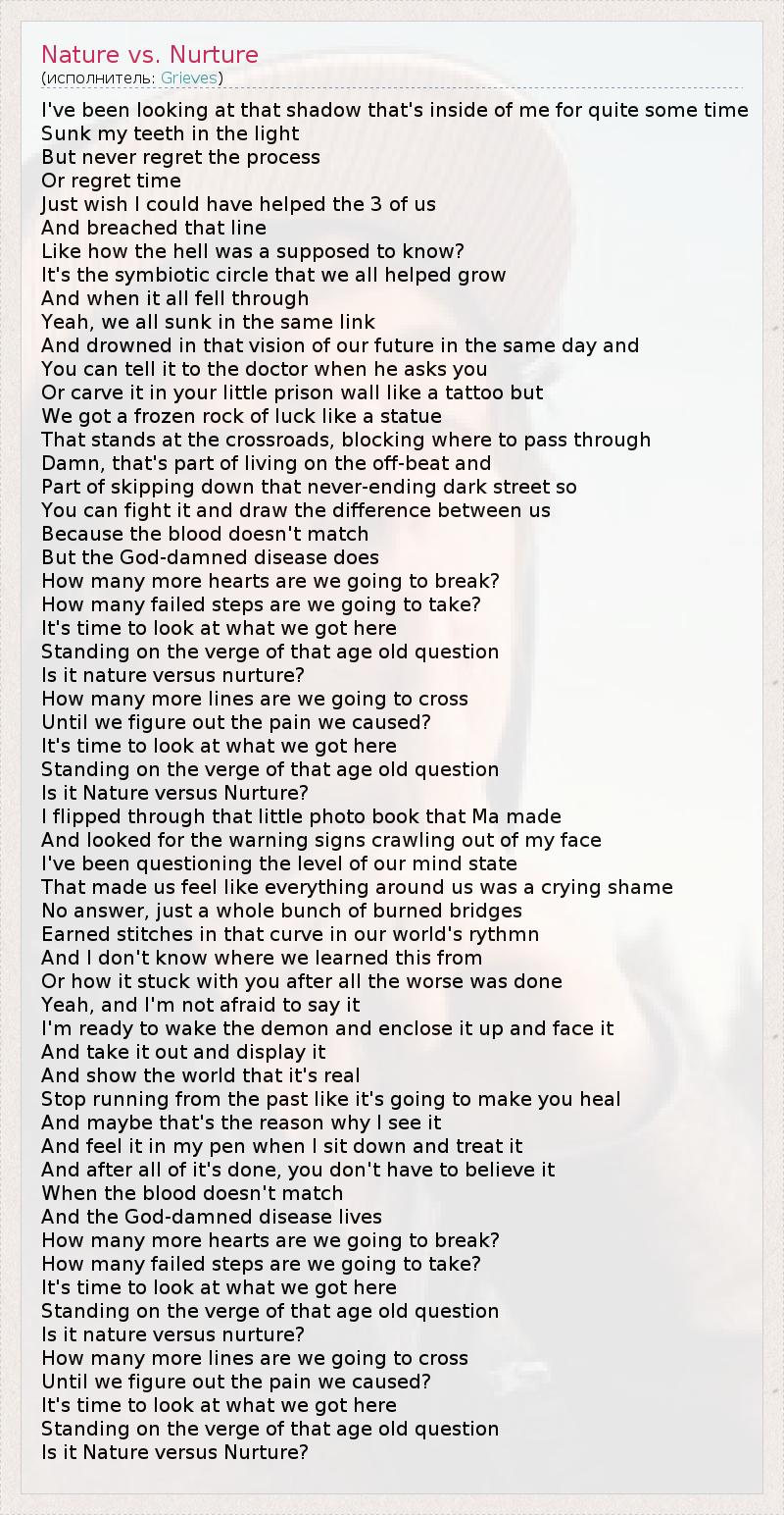 А как ты думаешь, о чем песня "Nature vs. Nurture" ?