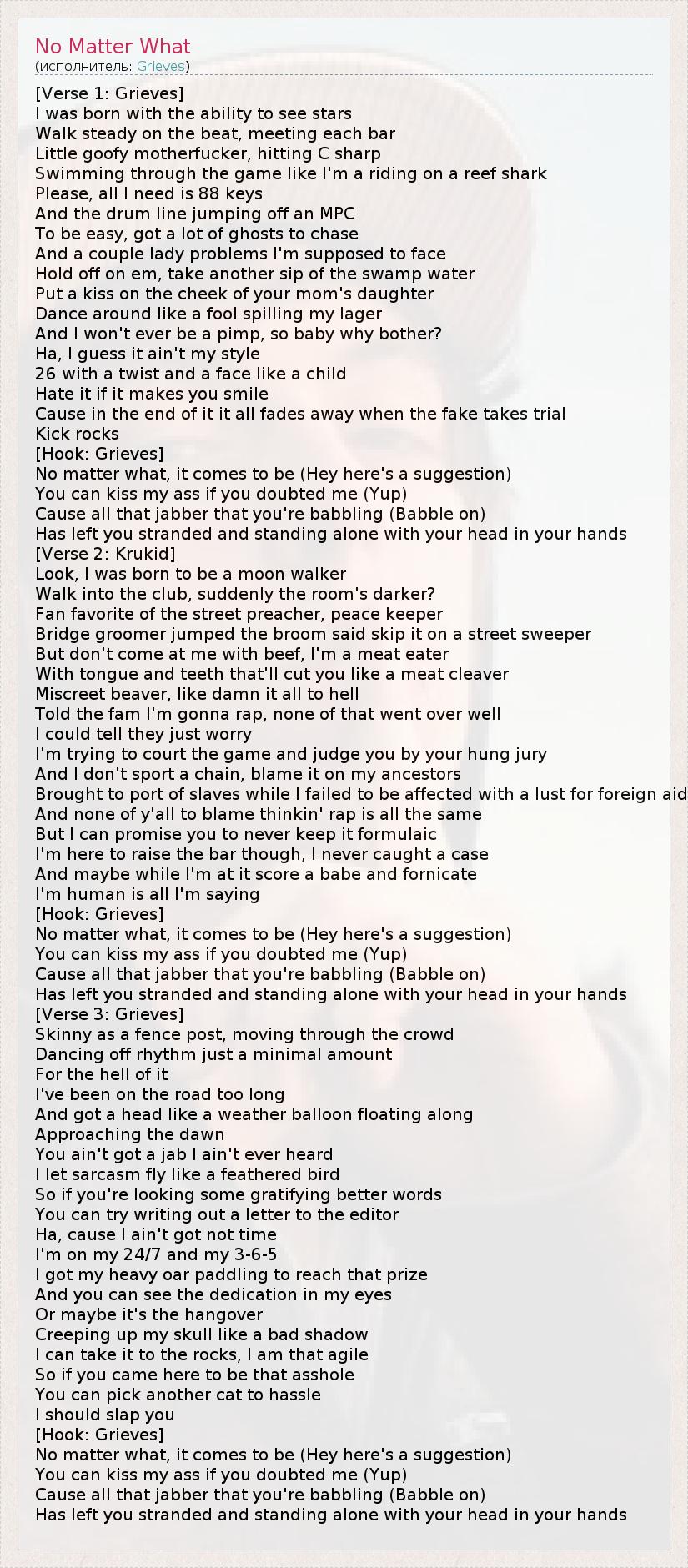 А как ты думаешь, о чем песня "No Matter What" ?