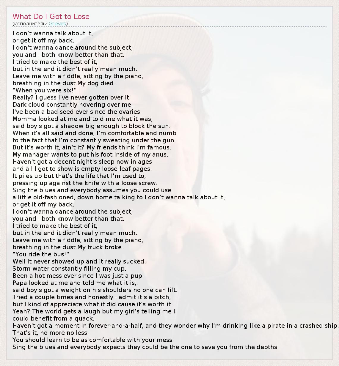 А как ты думаешь, о чем песня "What Do I Got to Lose" ?