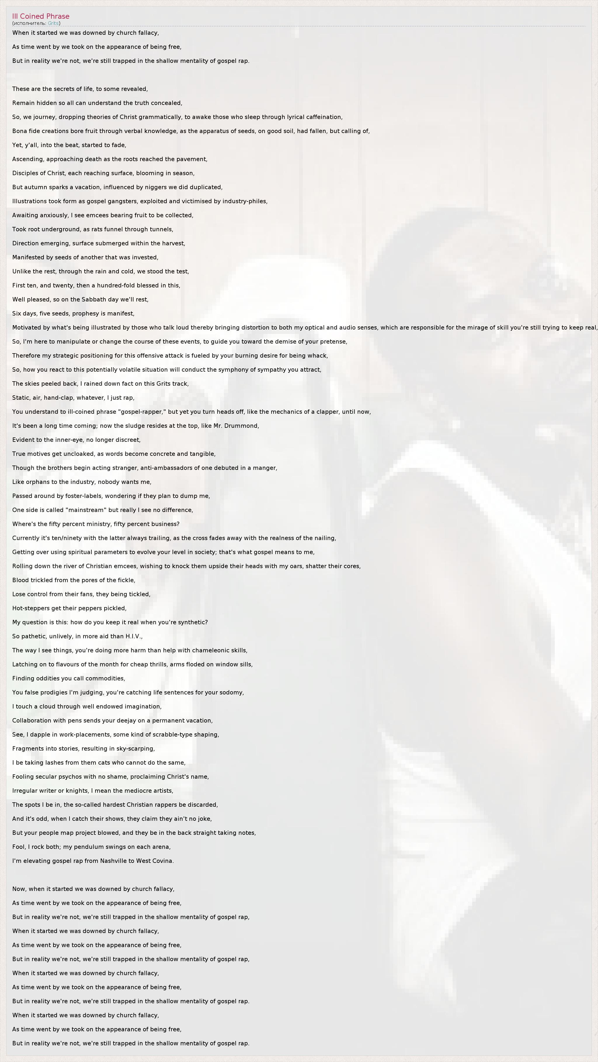 А как ты думаешь, о чем песня "Ill Coined Phrase" ?