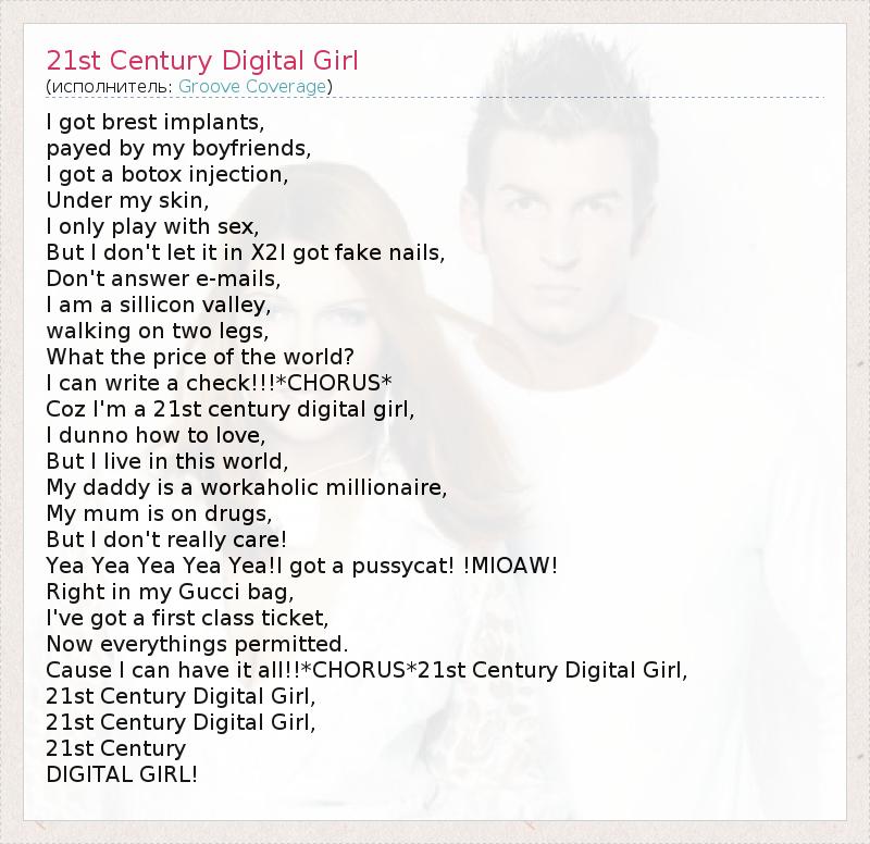А как ты думаешь, о чем песня "21st Century Digital Girl" ?