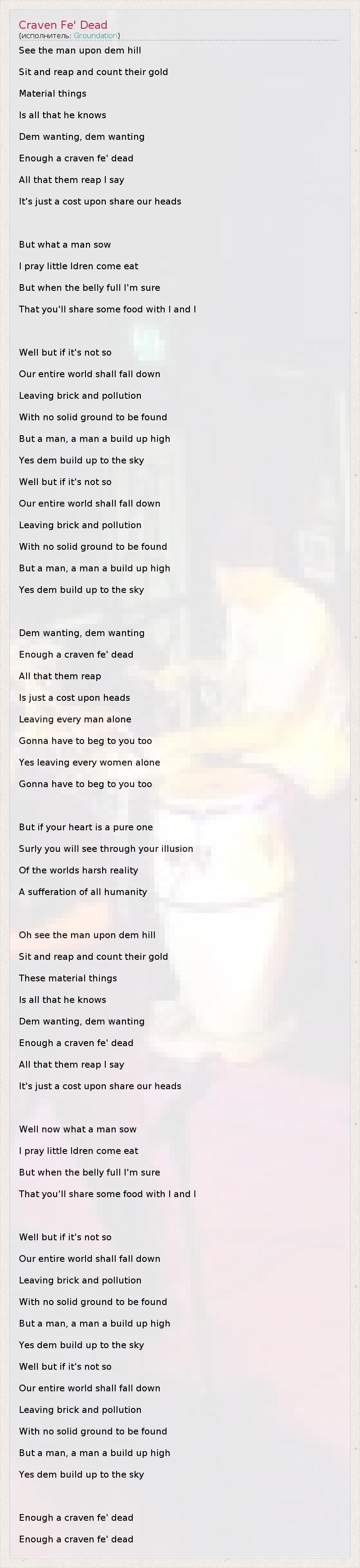 А как ты думаешь, о чем песня "Craven Fe' Dead" ?