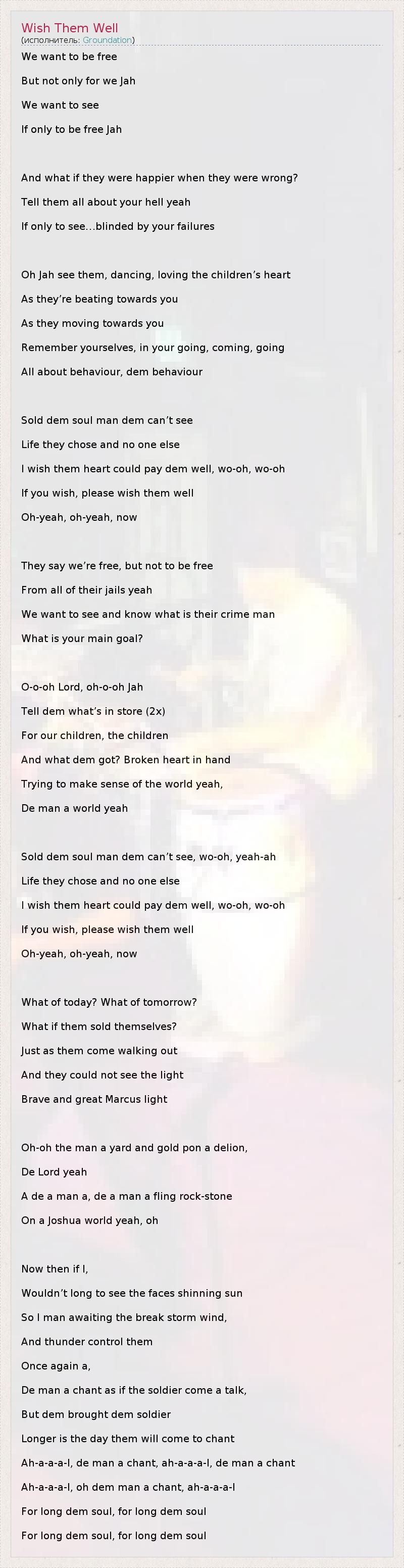 А как ты думаешь, о чем песня "Wish Them Well" ?