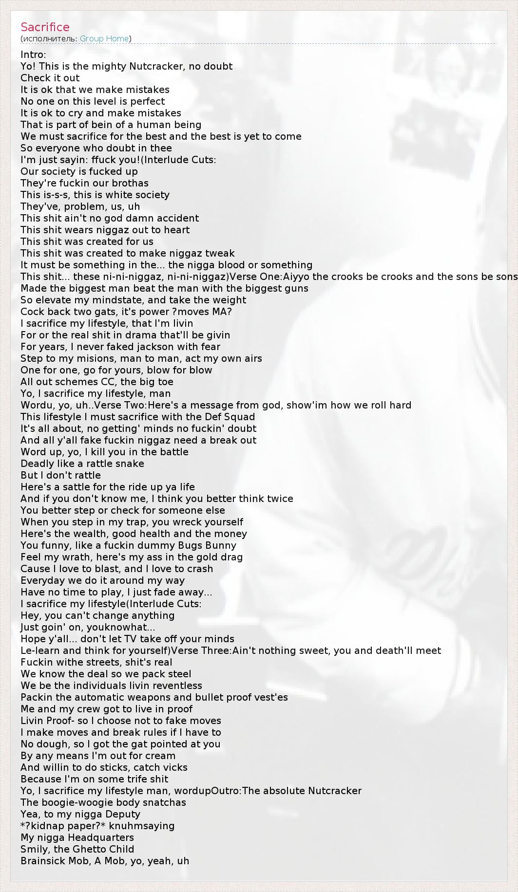 Yo, I sacrifice my lifestyle man, wordupOutro:The absolute Nutcracker