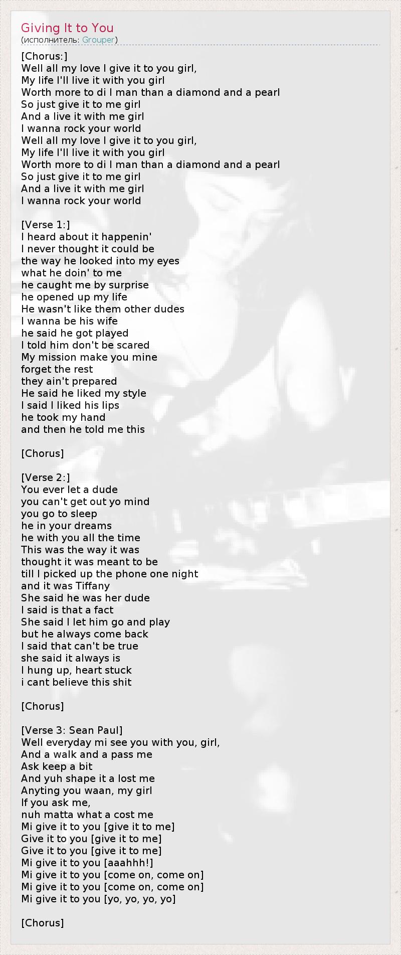 А как ты думаешь, о чем песня "Giving It to You" ?