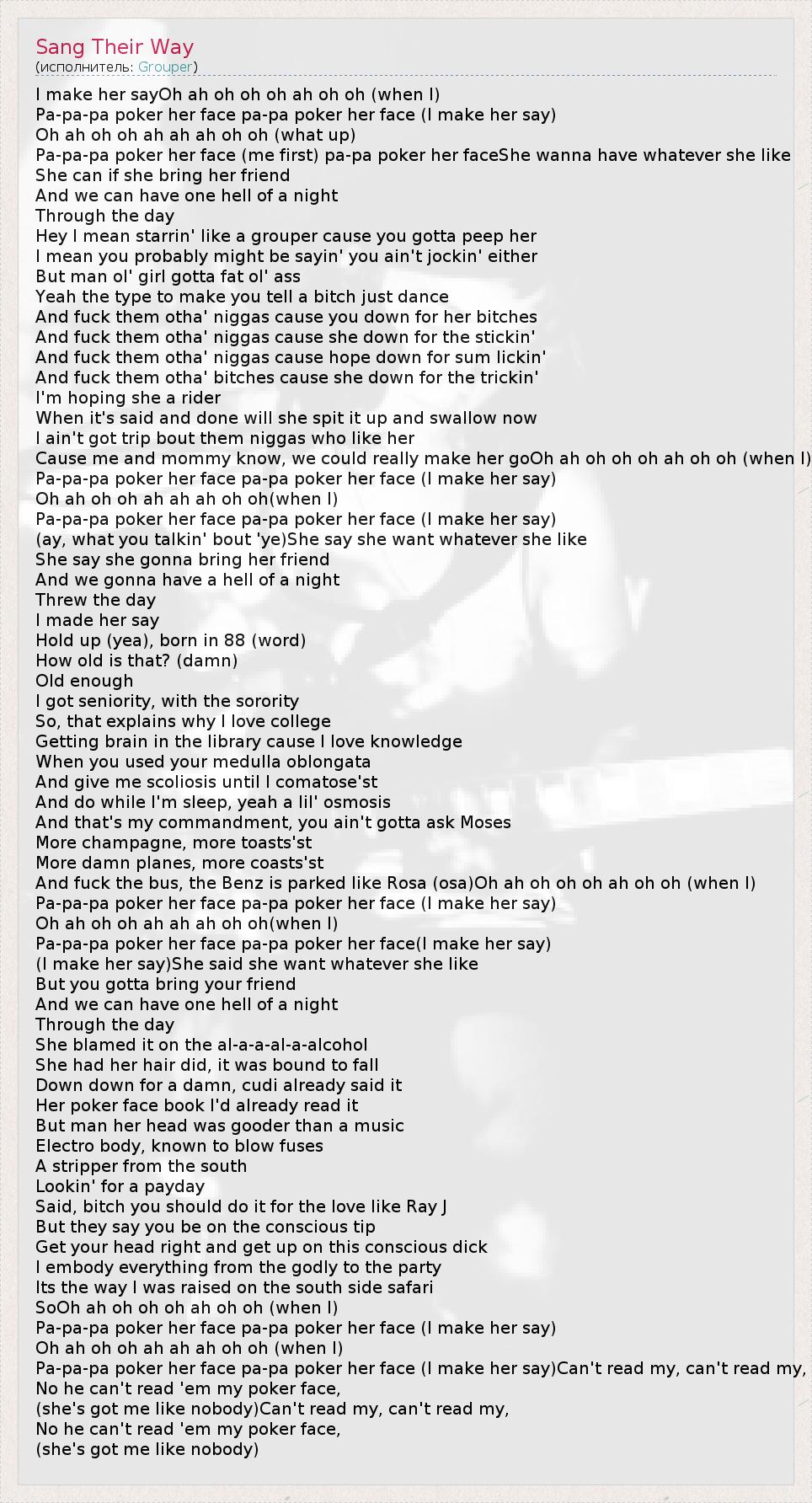 Pa-pa-pa poker her face pa-pa poker her face (I make her say)Can't read my, can't read my,