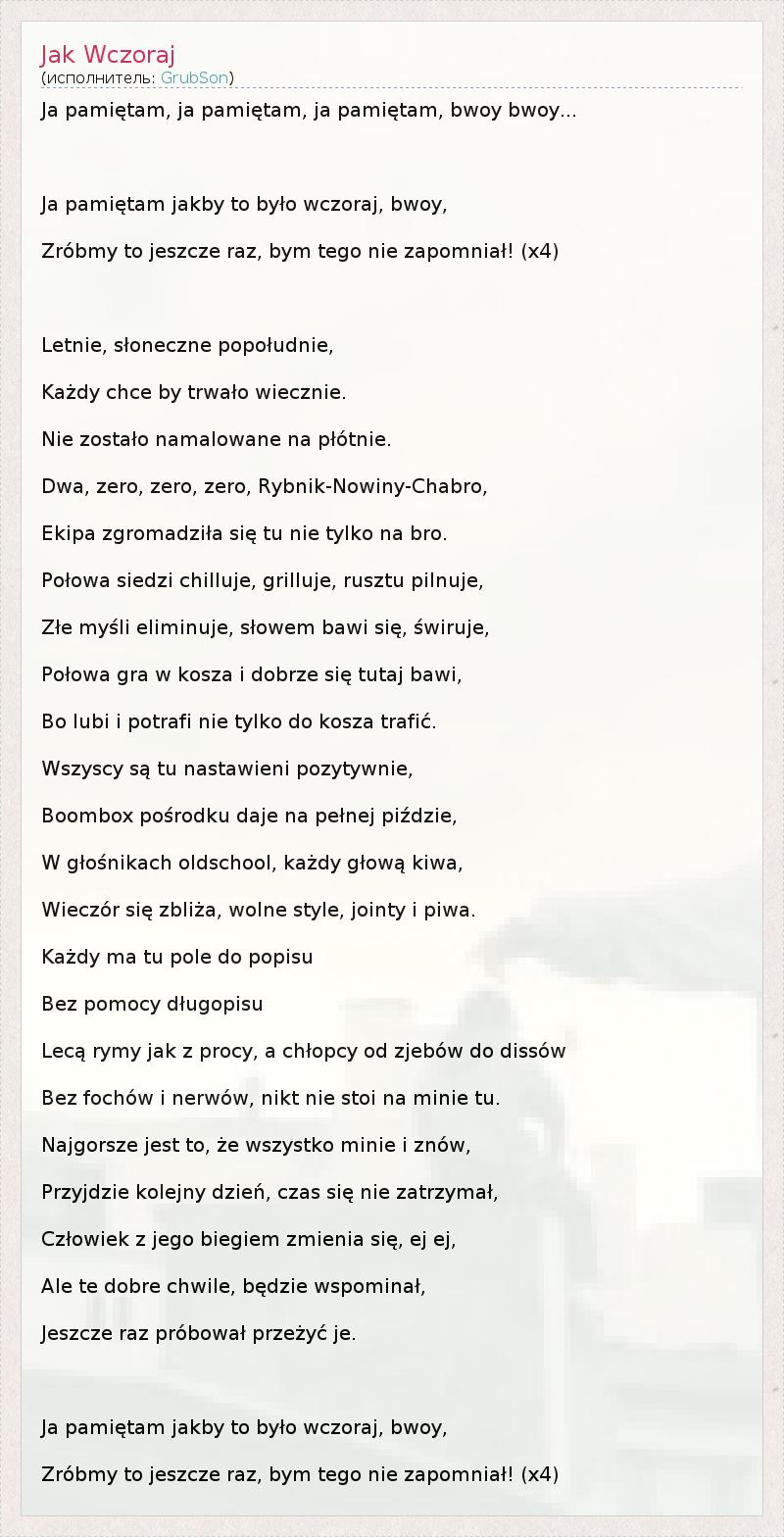 А как ты думаешь, о чем песня "Jak Wczoraj" ?
