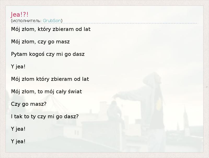 Mój złom, który zbieram od lat Mój złom, czy go masz Pytam kogoś czy mi go dasz Y jea! Mój złom który zbieram od lat Mój złom, to mój cały świat Czy go masz? I tak to ty czy mi go dasz? Y jea! Y jea!