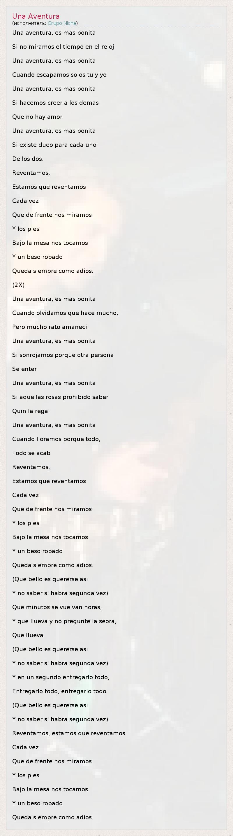 А как ты думаешь, о чем песня "Una Aventura" ?