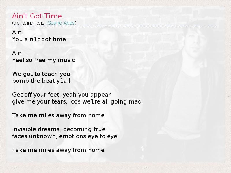 А как ты думаешь, о чем песня "Ain't Got Time" ?
