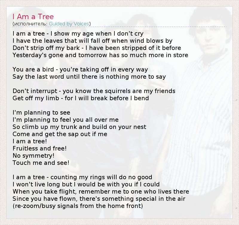 А как ты думаешь, о чем песня "I Am a Tree" ?