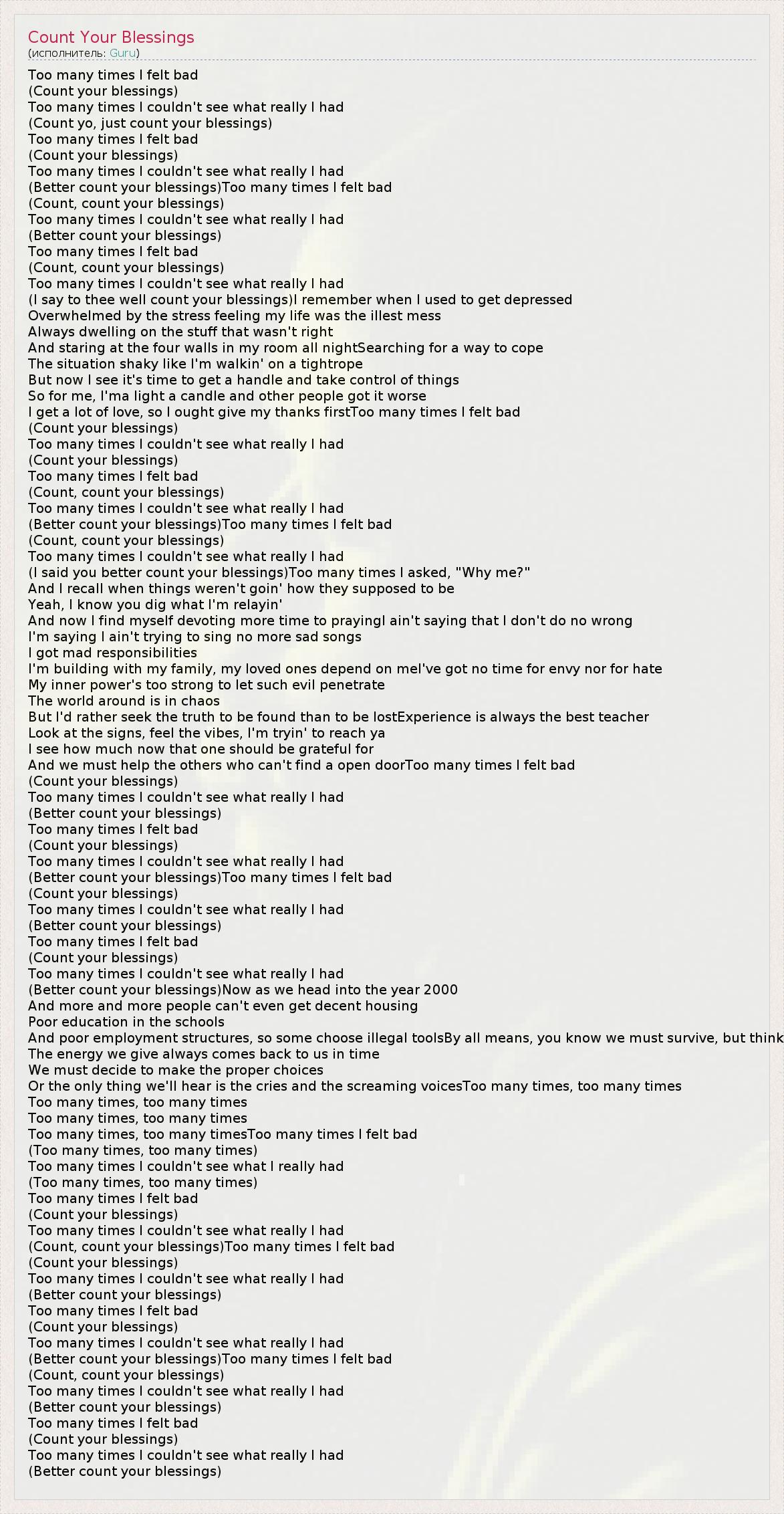 (Better count your blessings)Too many times I felt bad