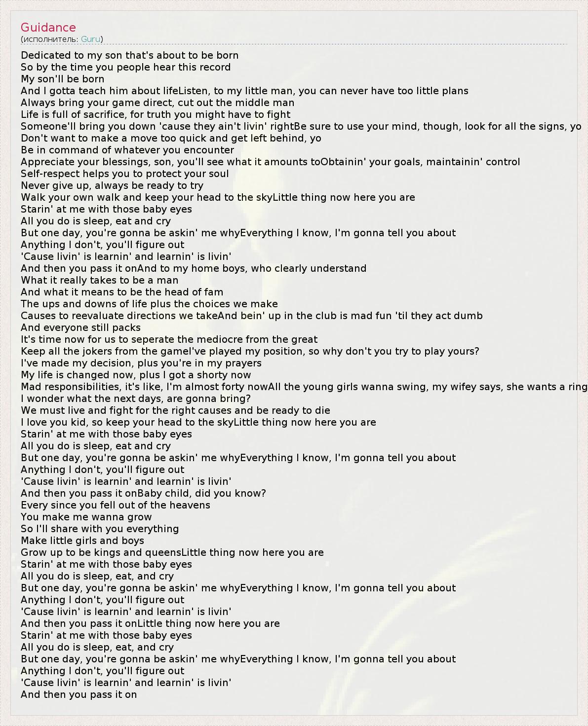 А как ты думаешь, о чем песня "Guidance" ?