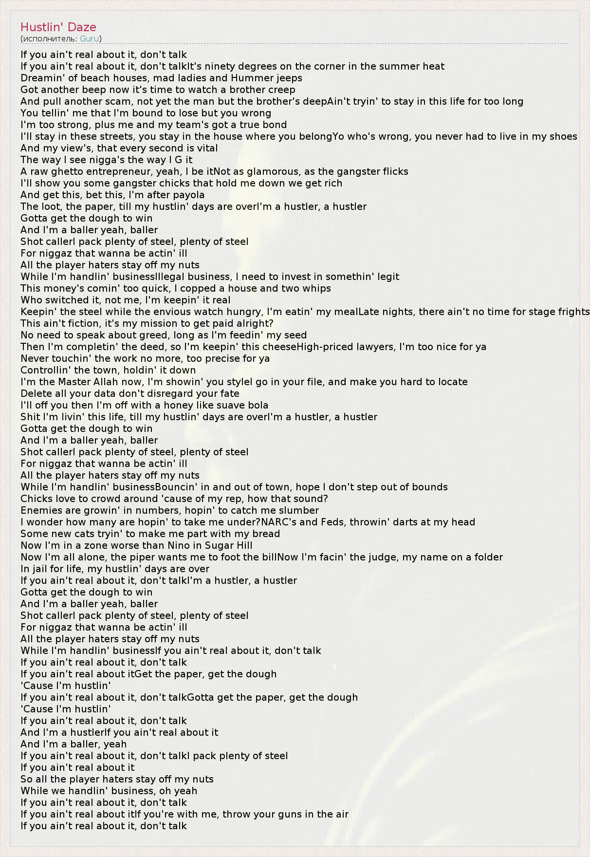 А как ты думаешь, о чем песня "Hustlin' Daze" ?