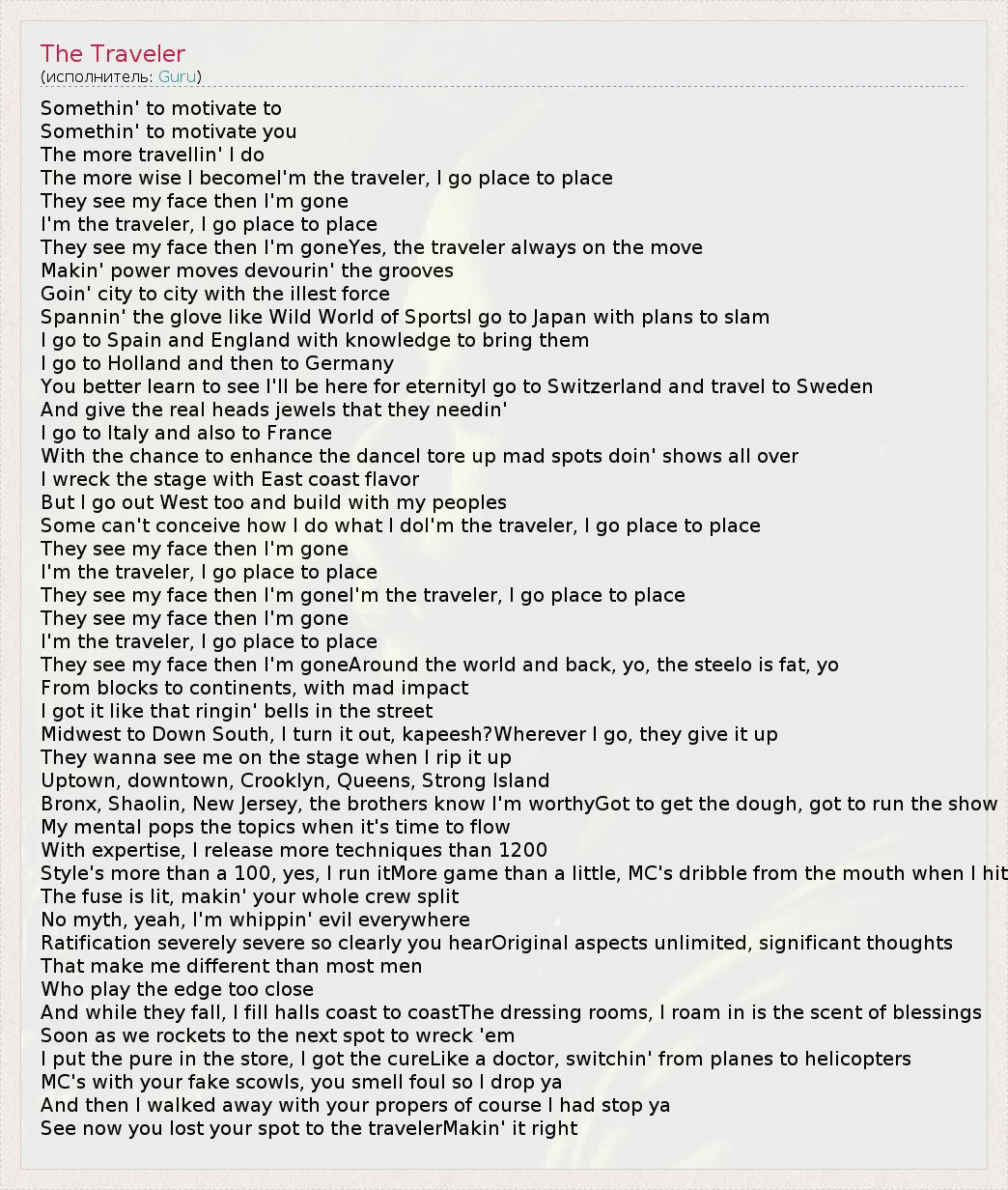Some can't conceive how I do what I doI'm the traveler, I go place to place