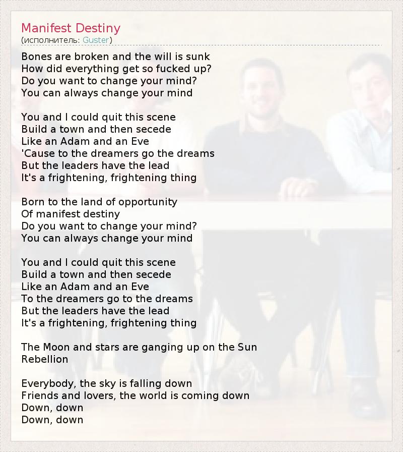 А как ты думаешь, о чем песня "Manifest Destiny" ?