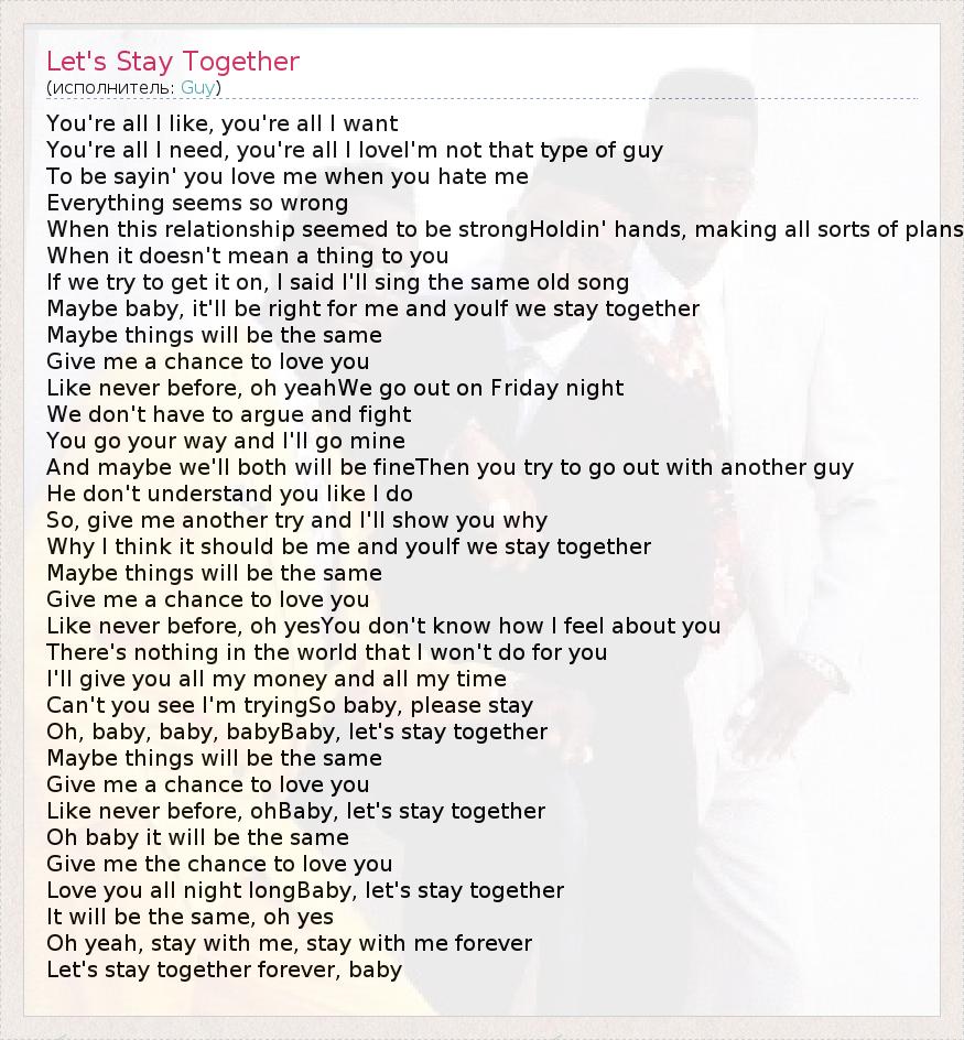 А как ты думаешь, о чем песня "Let's Stay Together" ?
