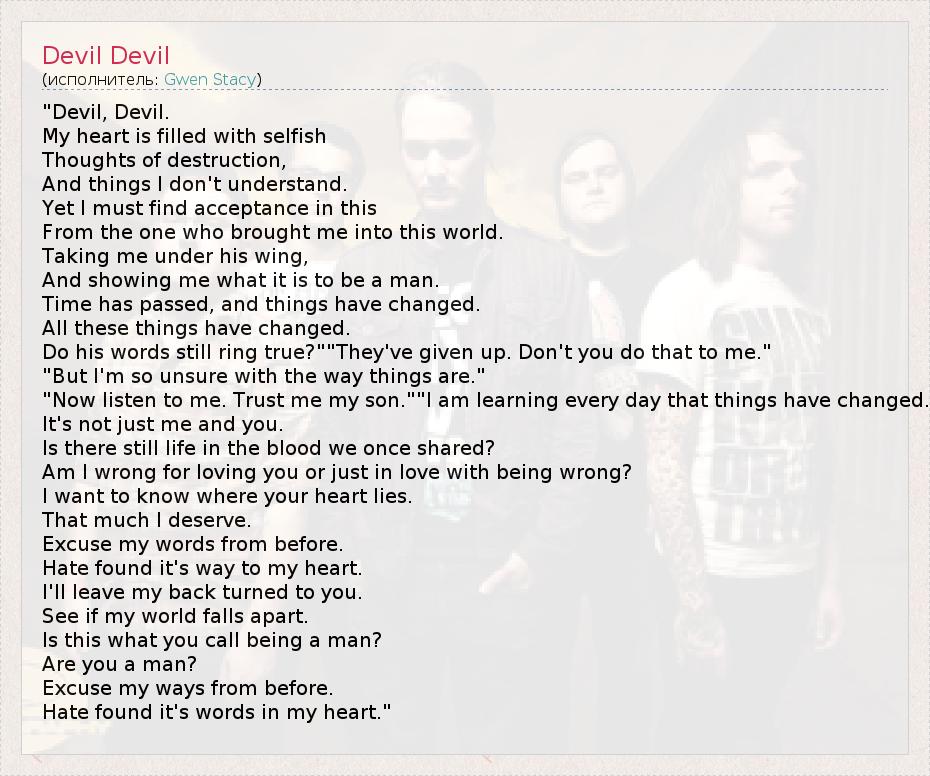 А как ты думаешь, о чем песня "Devil Devil" ?