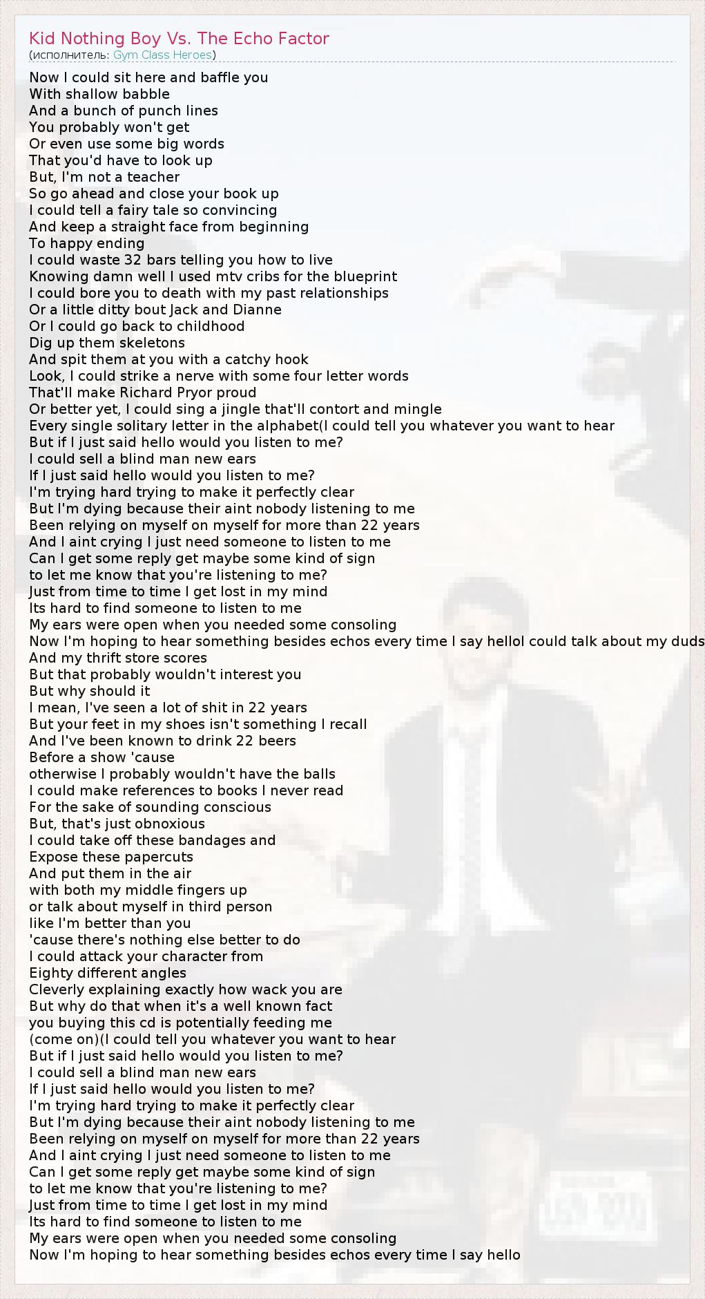 ГлавнаяИсполнителиGym Class HeroesKid Nothing Boy Vs. The Echo Factor
