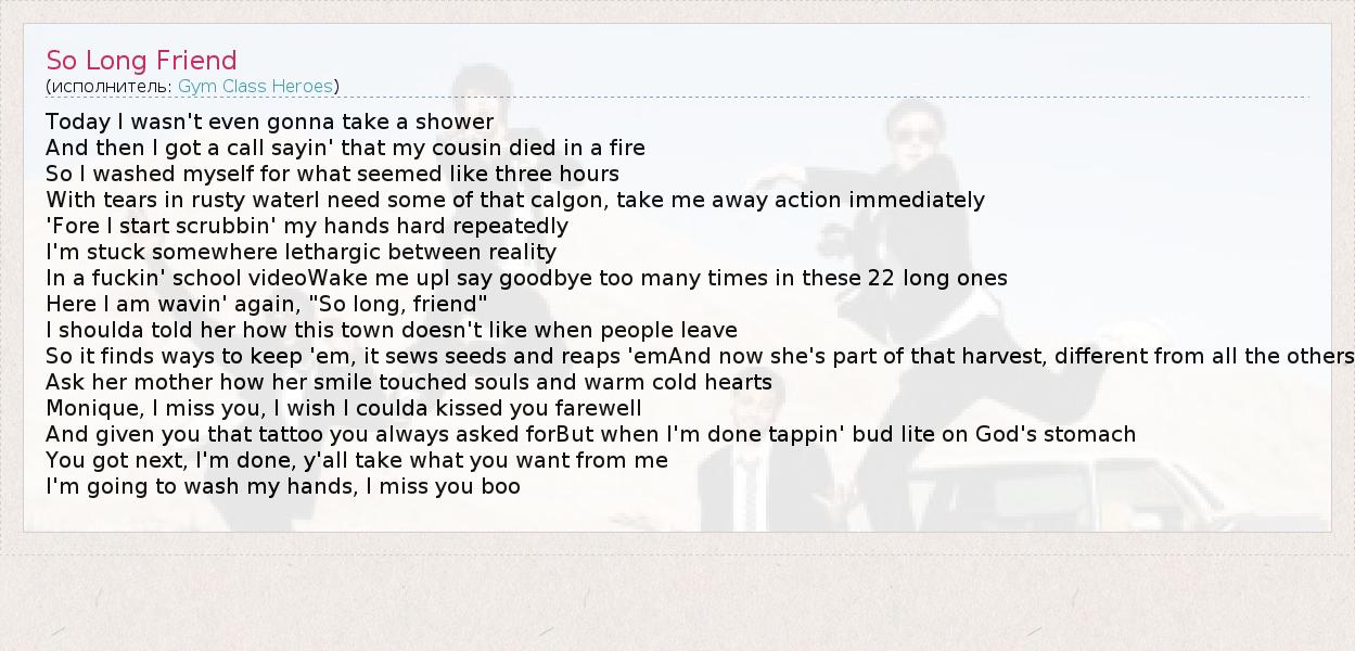 А как ты думаешь, о чем песня "So Long Friend" ?