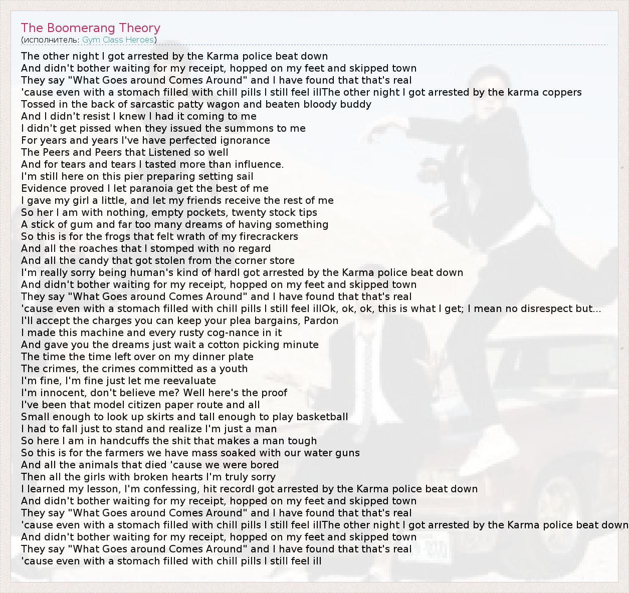 А как ты думаешь, о чем песня "The Boomerang Theory" ?