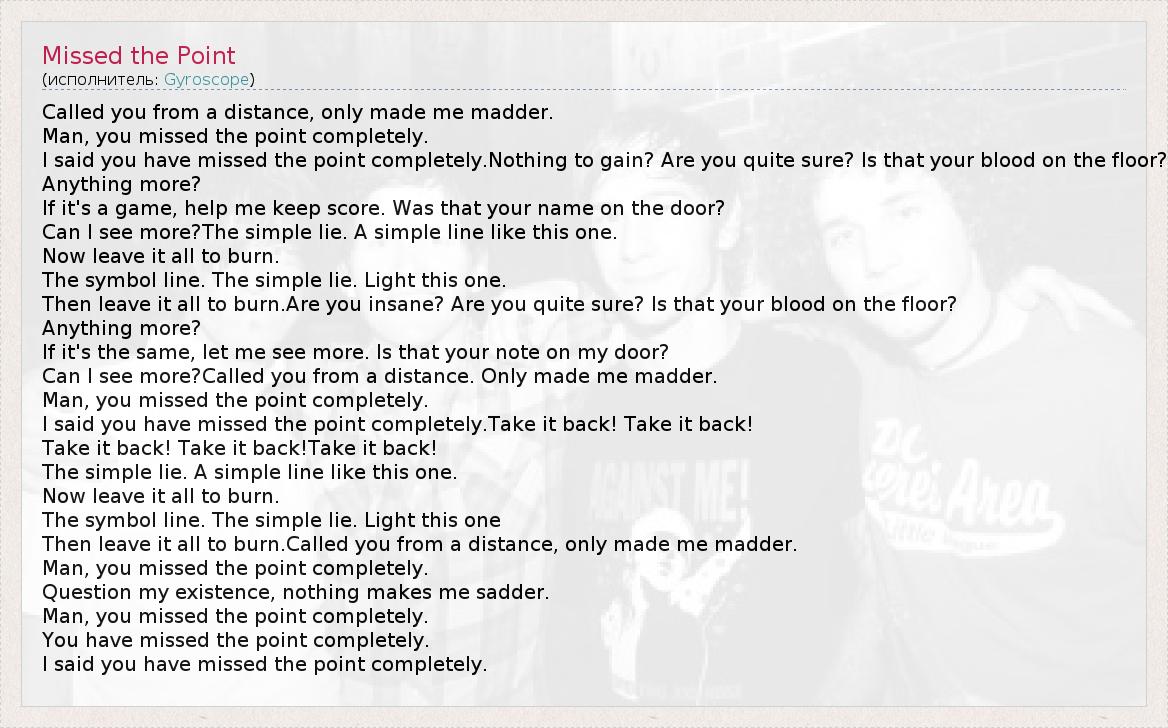 А как ты думаешь, о чем песня "Missed the Point" ?