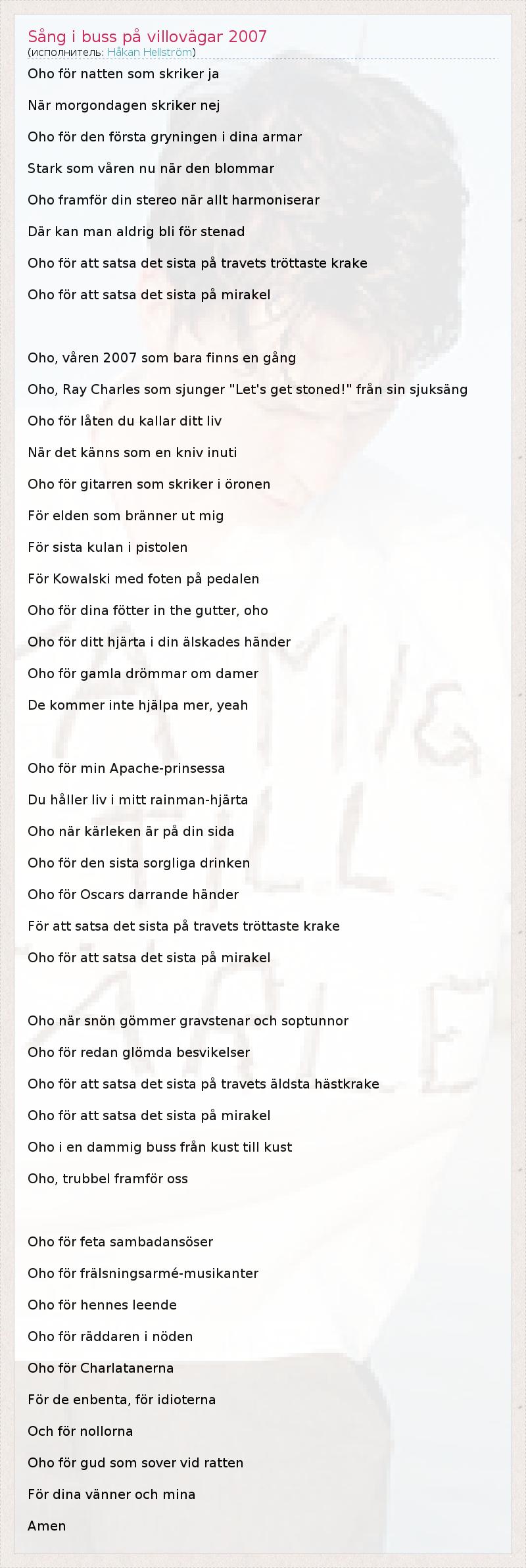 А как ты думаешь, о чем песня "Sång i buss på villovägar 2007" ?