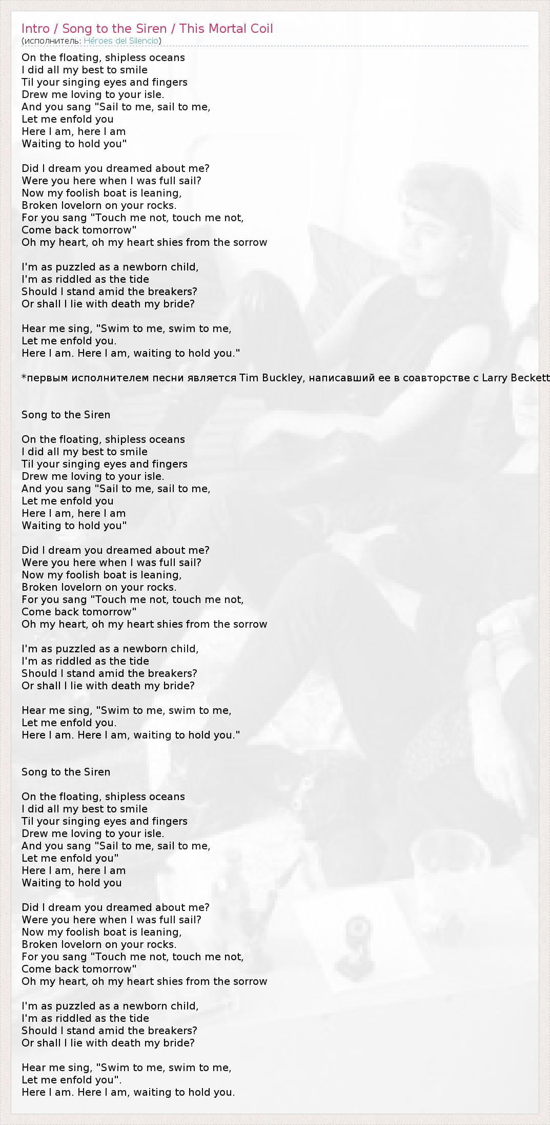 ГлавнаяИсполнителиHéroes del SilencioIntro / Song to the Siren / This Mortal Coil