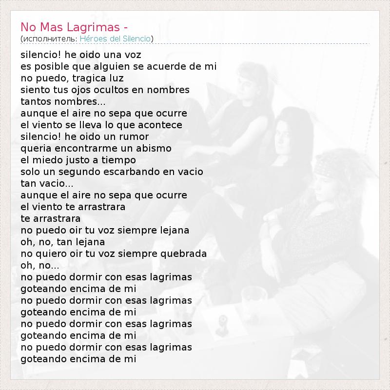 А как ты думаешь, о чем песня "No Mas Lagrimas -" ?