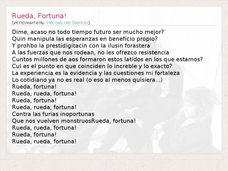 А как ты думаешь, о чем песня "Rueda, Fortuna!" ?