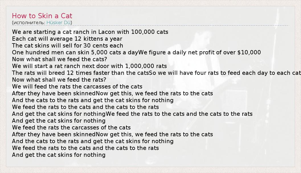 А как ты думаешь, о чем песня "How to Skin a Cat" ?