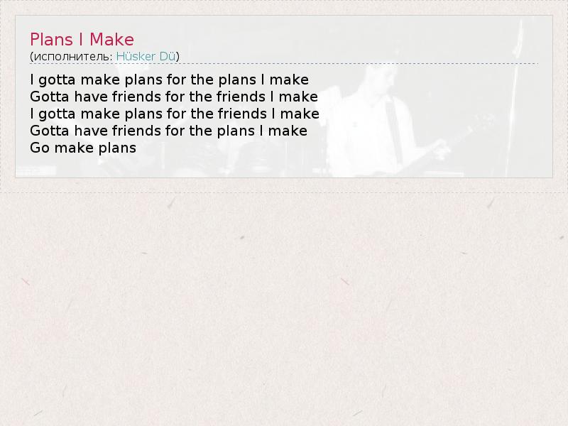 А как ты думаешь, о чем песня "Plans I Make" ?