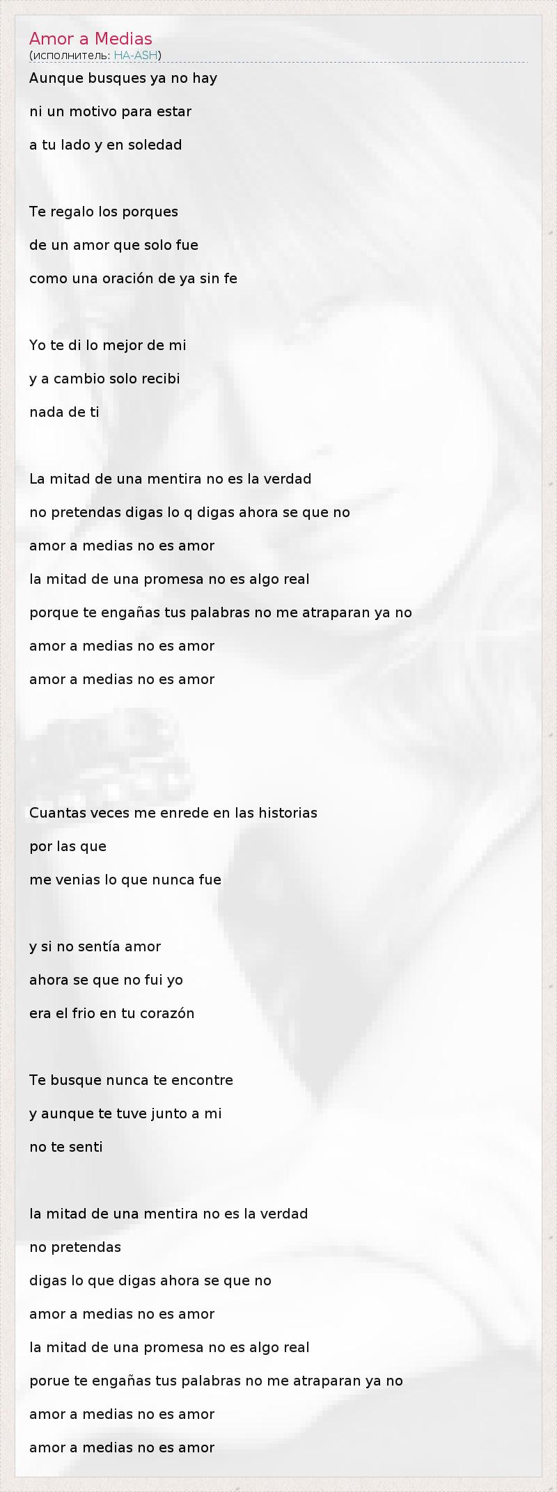 А как ты думаешь, о чем песня "Amor a Medias" ?