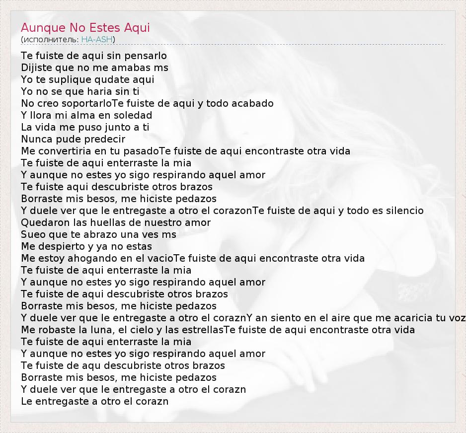 А как ты думаешь, о чем песня "Aunque No Estes Aqui" ?